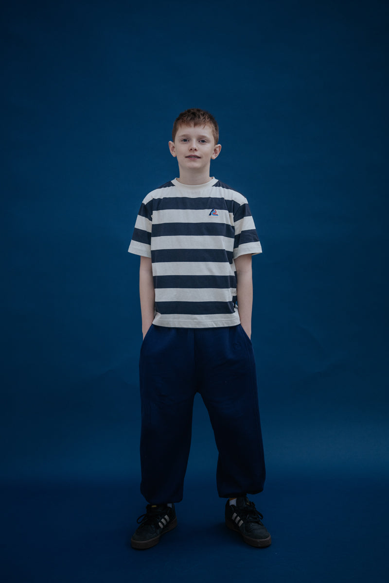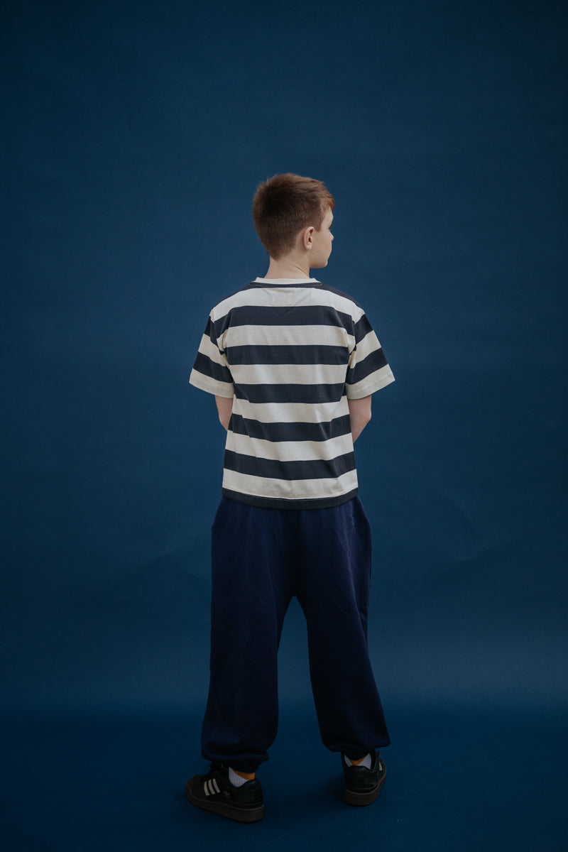 The soft organic cotton fabric ensures breathable comfort throughout the day, while the bold block stripe design adds a sophisticated touch to casual and everyday outfits alike. With its versatile styling and quality construction, this piece pairs perfectly with jeans, shorts, or layers beautifully under jackets.