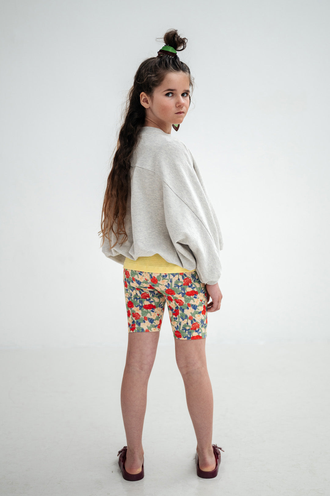 In a vibrant wildflower pattern, these biker shorts bring easy, stretchy comfort with bold all-over print appeal. Cut from 88% recycled polyester and 12% elasthan in a comfortable fitted silhouette, they feature a cheerful botanical design with red, yellow, and blue blooms on a soft cream base that adds a fun, spirited touch to active wear.