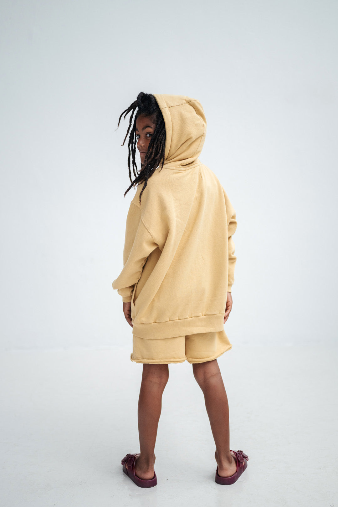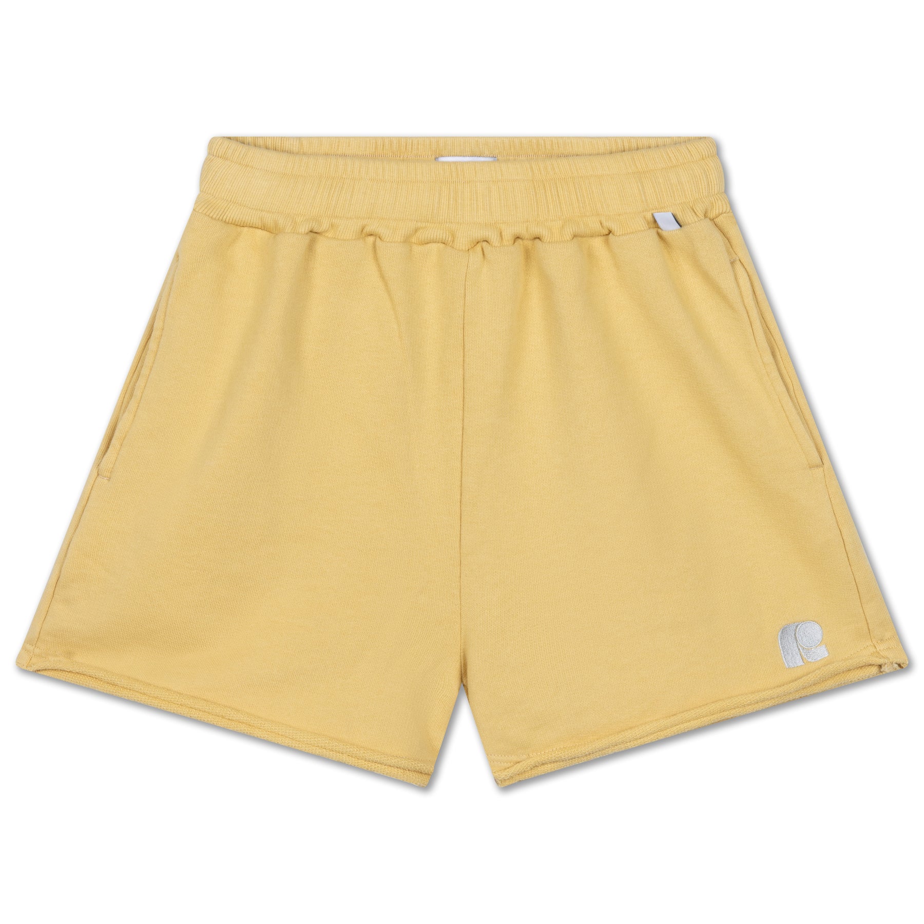 The easy short in golden oat is crafted from organic cotton. Designed for comfort and style, it features a raw hem, an elastic waistband and practical side pockets. An embroidered logo and a woven brand tag complete the design.