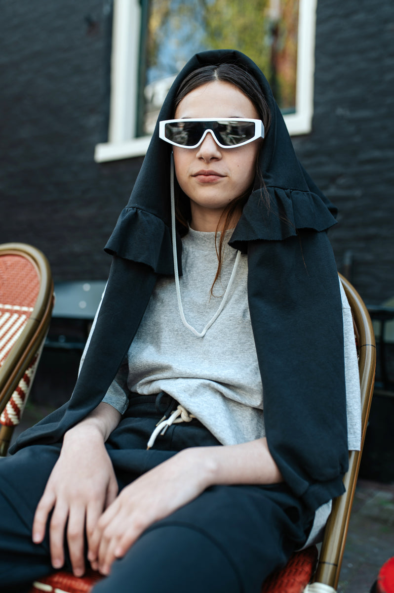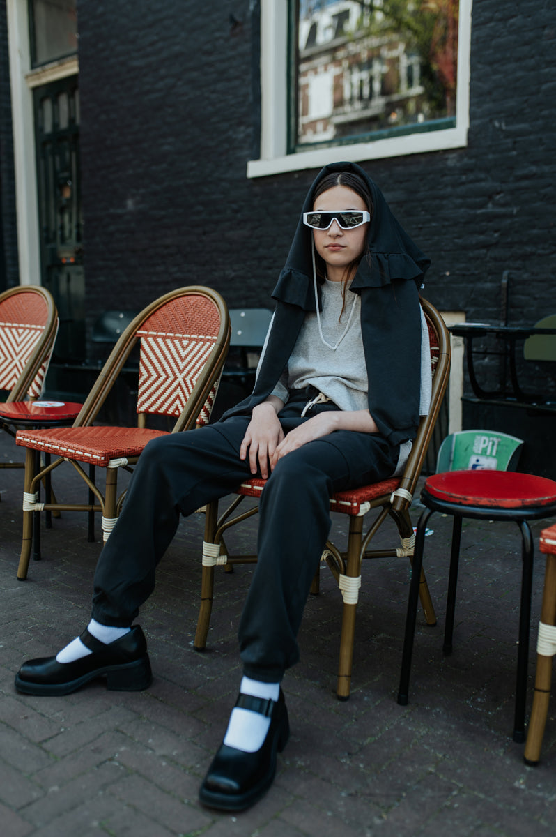A pair of soft organic cotton sweatpants featuring a drawstring elastic waist, two side pockets and elasticated ankles.