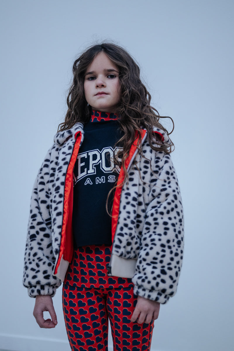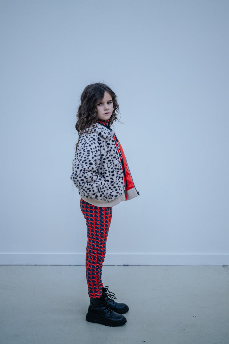 Make a statement with this waist-length bomber-style jacket in soft dalmatian-print faux fur. Designed with a rounded collar and finished with ribbed cuffs at the sleeves, hem and back panel, it’s the perfect throw-on piece for bold, playful styling.