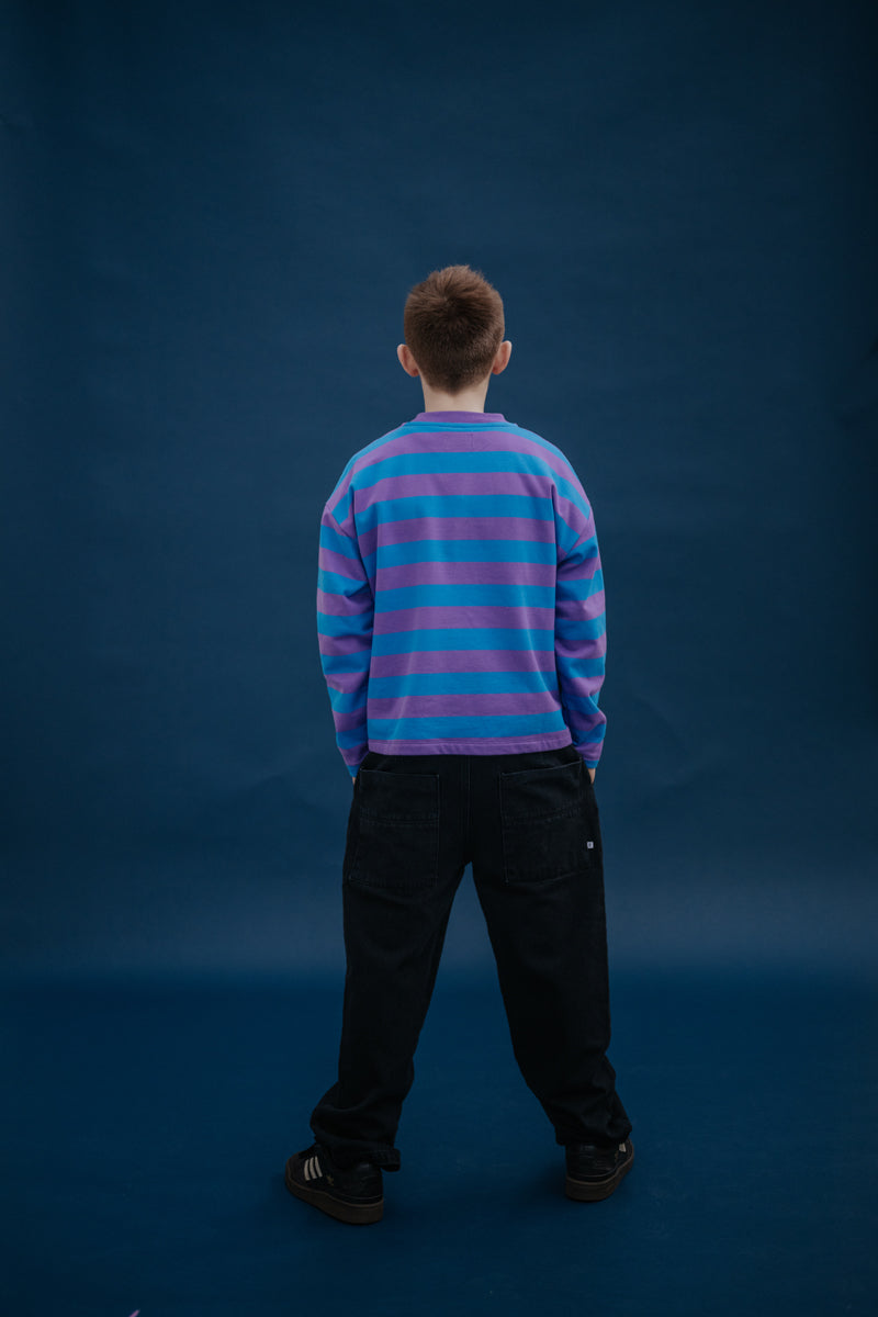oversized boxy sweater - cool pool violet blue block stripe