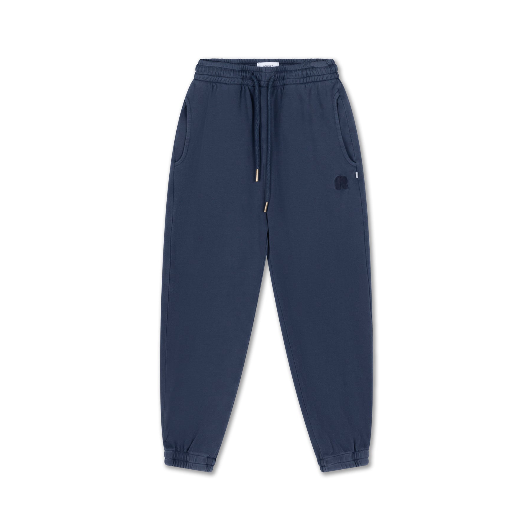 The sweatpant in midnight teal is crafted from organic cotton interlock. Shaped for a relaxed and easy-going fit, it features an elastic waistband with drawstring, cuffed ankles with ribbed detailing, and side pockets for everyday functionality. A woven brand tag in the side seam completes the design. The organic cotton fleece is made to withstand regular wear and washing while maintaining its shape and quality.