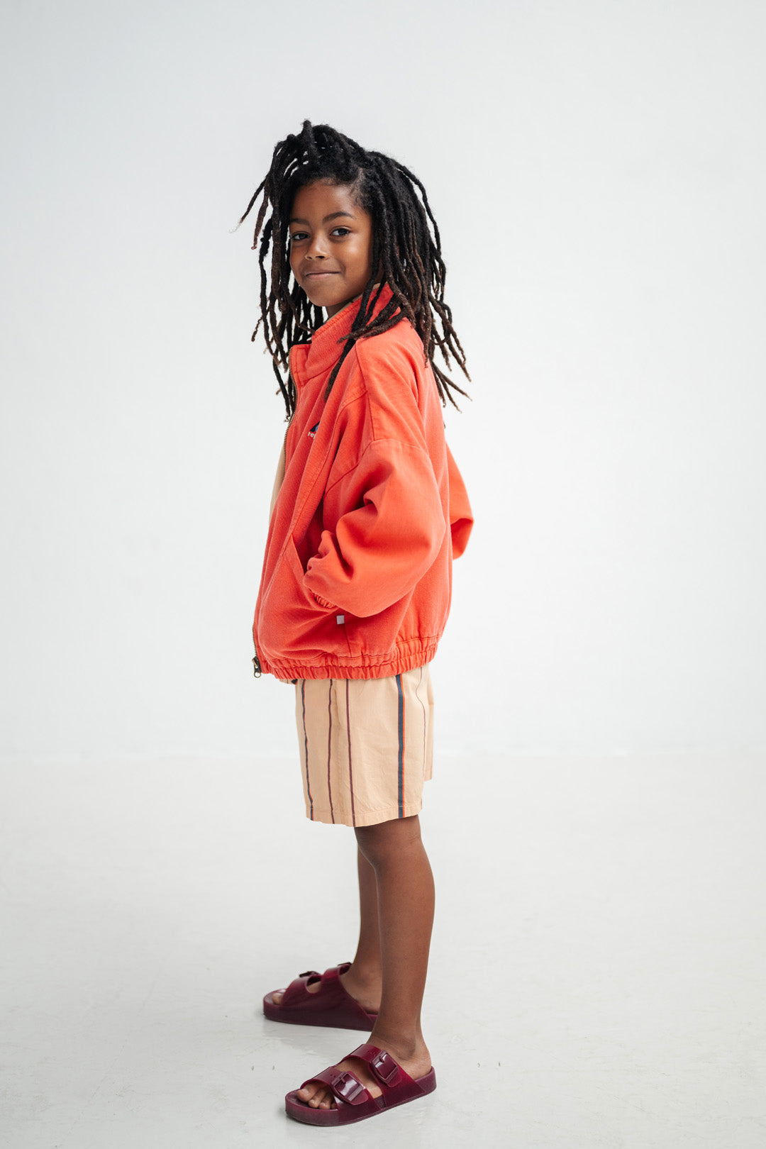 Cut from soft organic cotton twill, the windbreaker in washed flame red features two front pockets, zip closure, an embroidered logo and a woven brand tag on the side seam. The angled seams running from the bottom to the top create a retro '80s-inspired look, giving this jacket a bold and distinctive feel. The higher collar and elasticated hems ensure comfort and functionality. Perfect for easygoing, everyday wear.