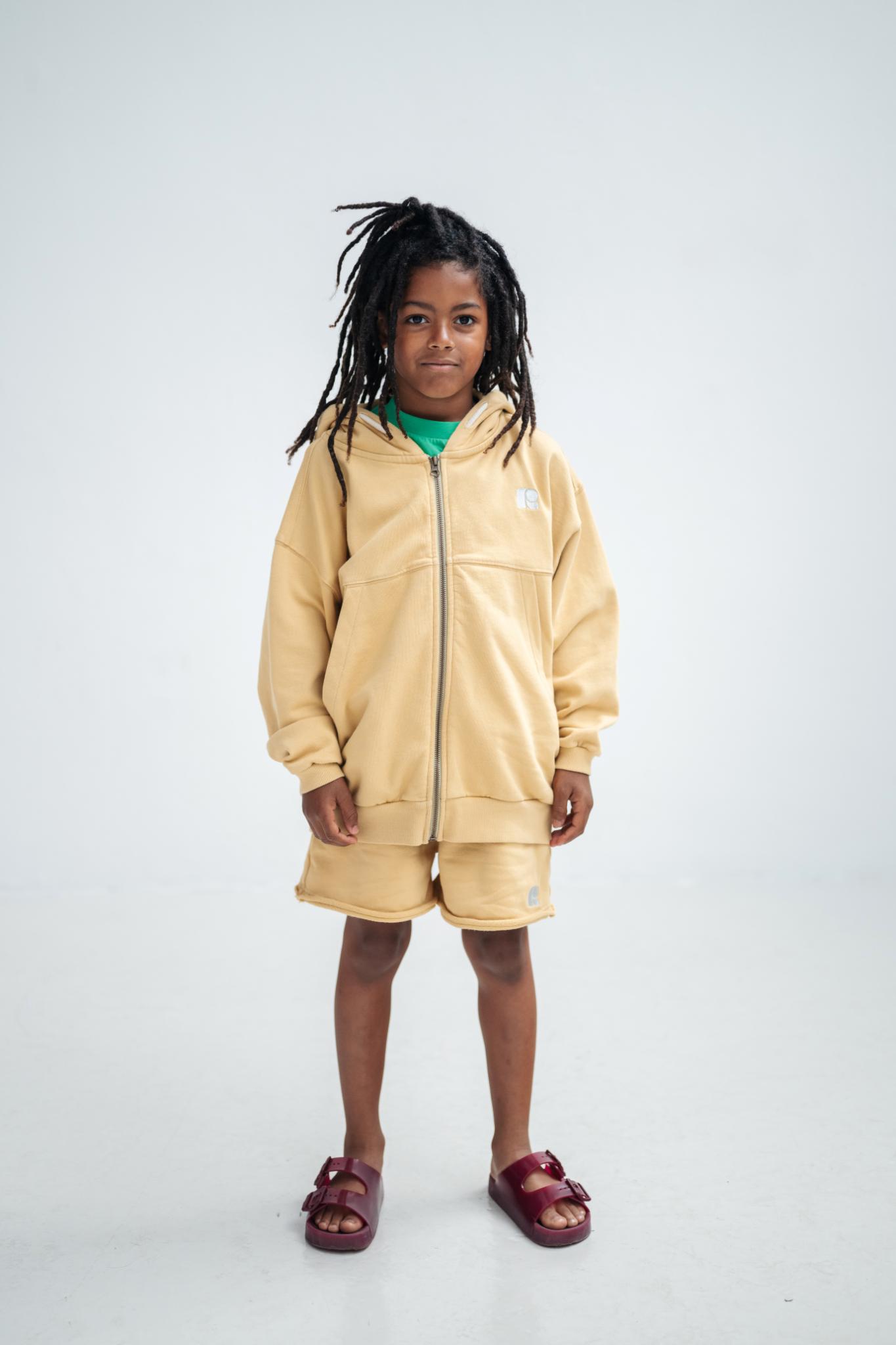 The zip hoodie in golden oat is crafted from soft organic cotton fleece and features a full-zip front closure with adjustable drawstring hood. Its rich golden oat colorway creates a luxurious look that's both contemporary and timeless. The premium organic cotton construction and thoughtful design details ensure lasting comfort and effortless style for any occasion.