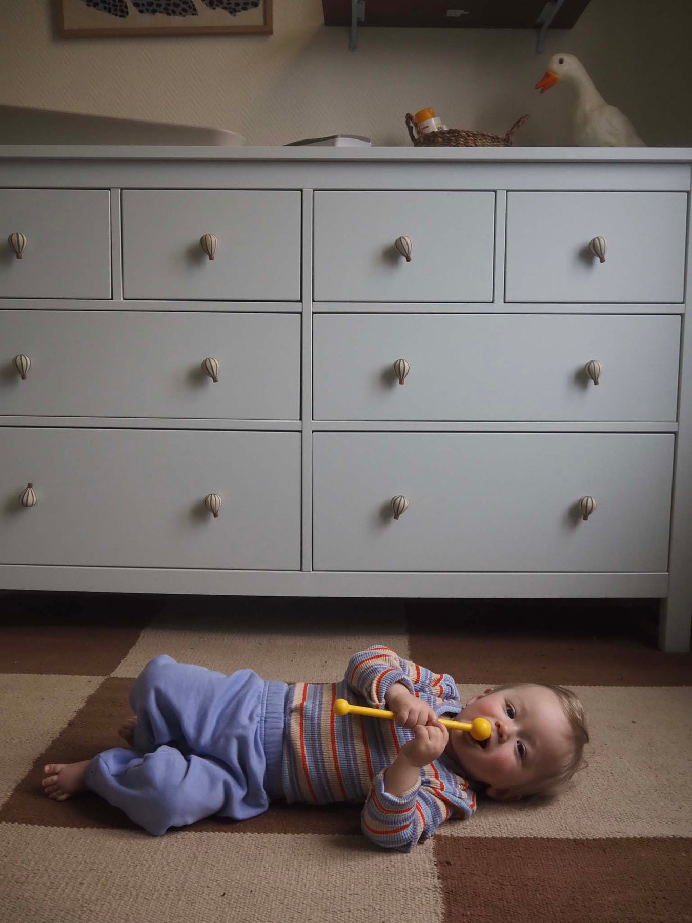 Designed with a straight, relaxed fit, they allow easy movement without feeling too slim. The elastic waistband and elasticated cuffs at the ankles ensure a comfortable fit and make dressing simple.