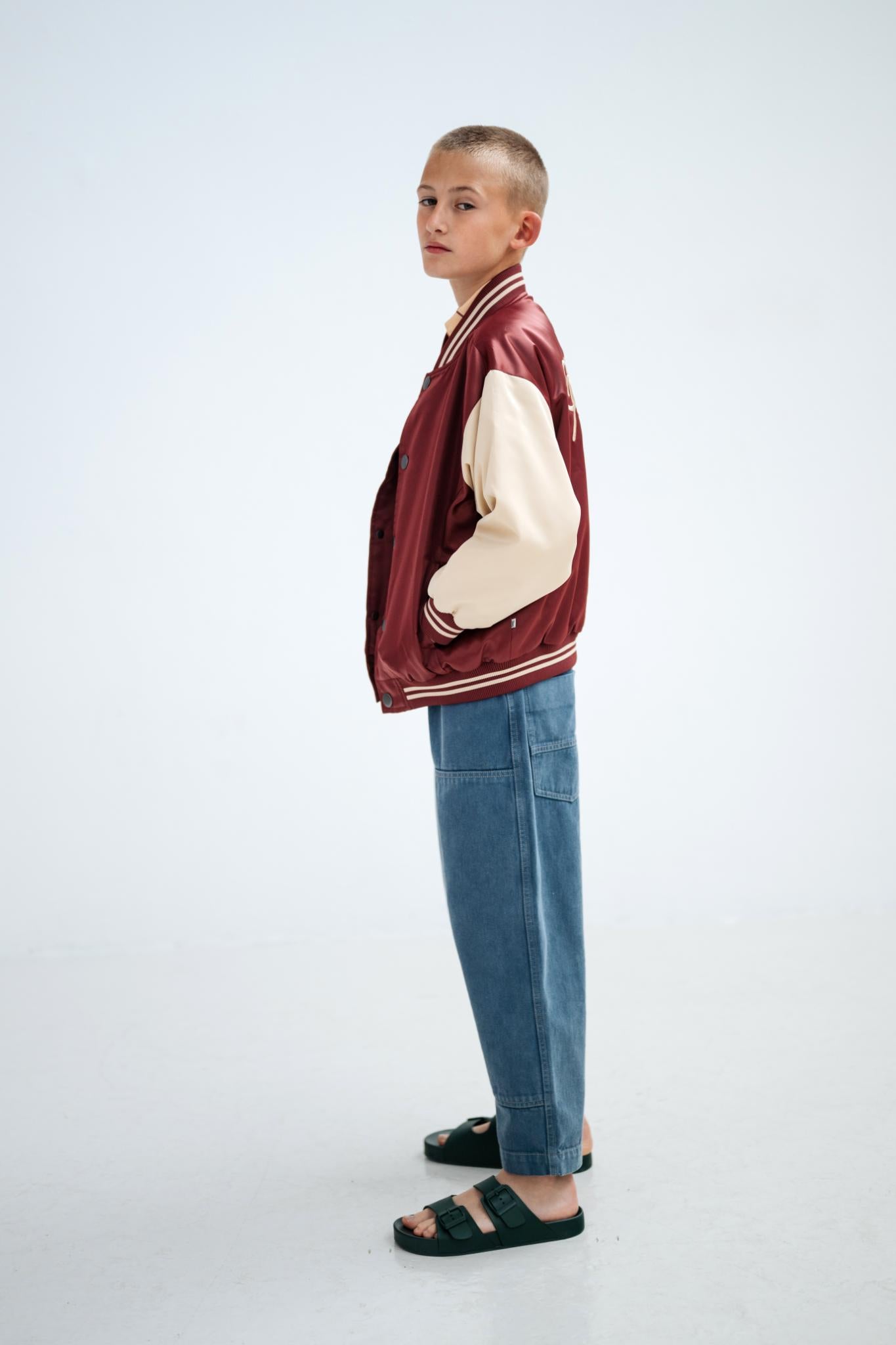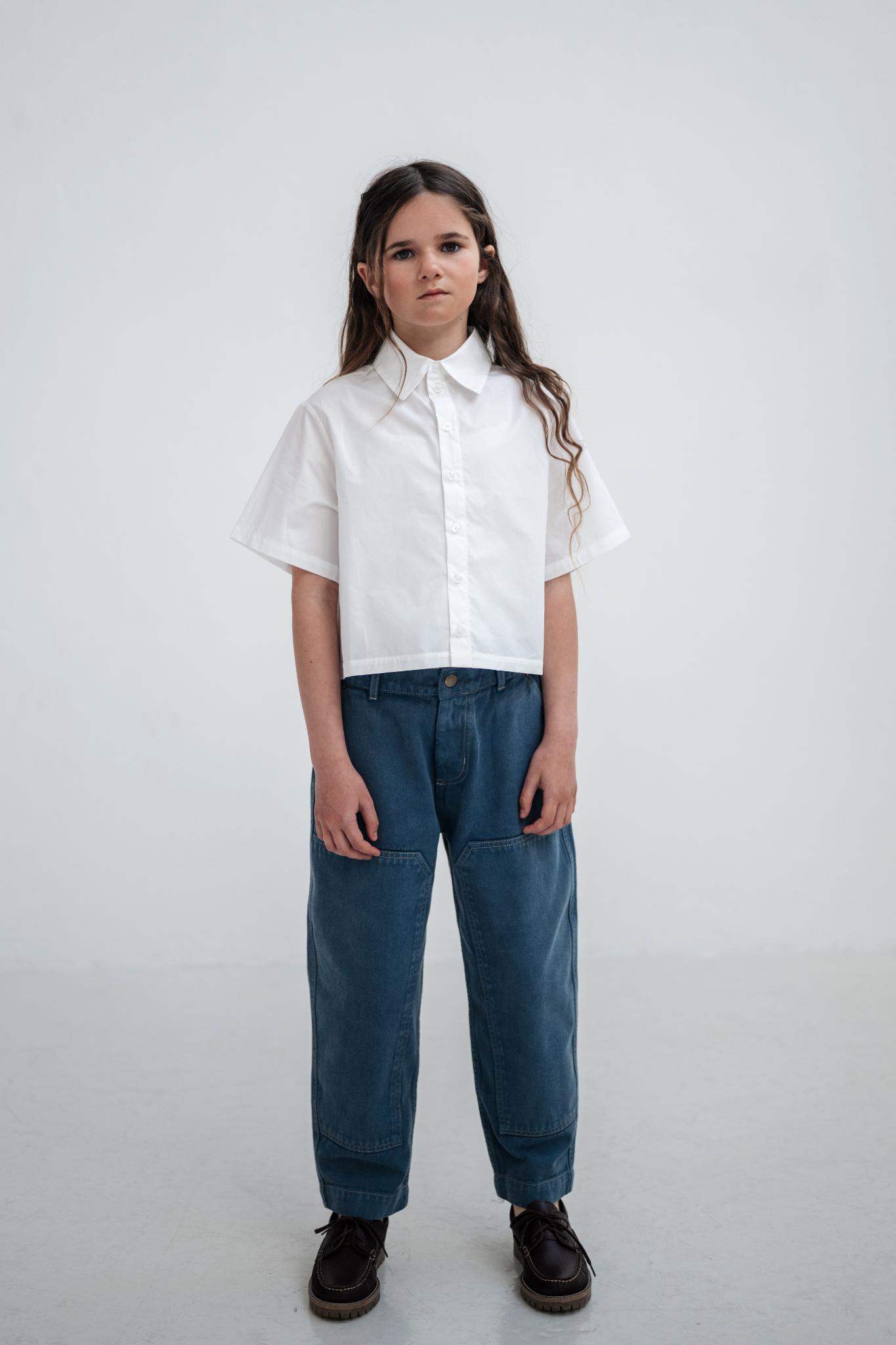 Designed with workwear-inspired practicality, the pants feature classic 5-pocket styling and signature workwear panels on the front, with contrast stitching adding depth and a refined, crafted look. The barrel-shaped leg creates a relaxed, contemporary fit that is wider through the thigh and gently tapers at the ankle, while knee darts allow for ease of movement. An adjustable inner waistband with elastic and buttons ensures a flexible, growing with you fit.