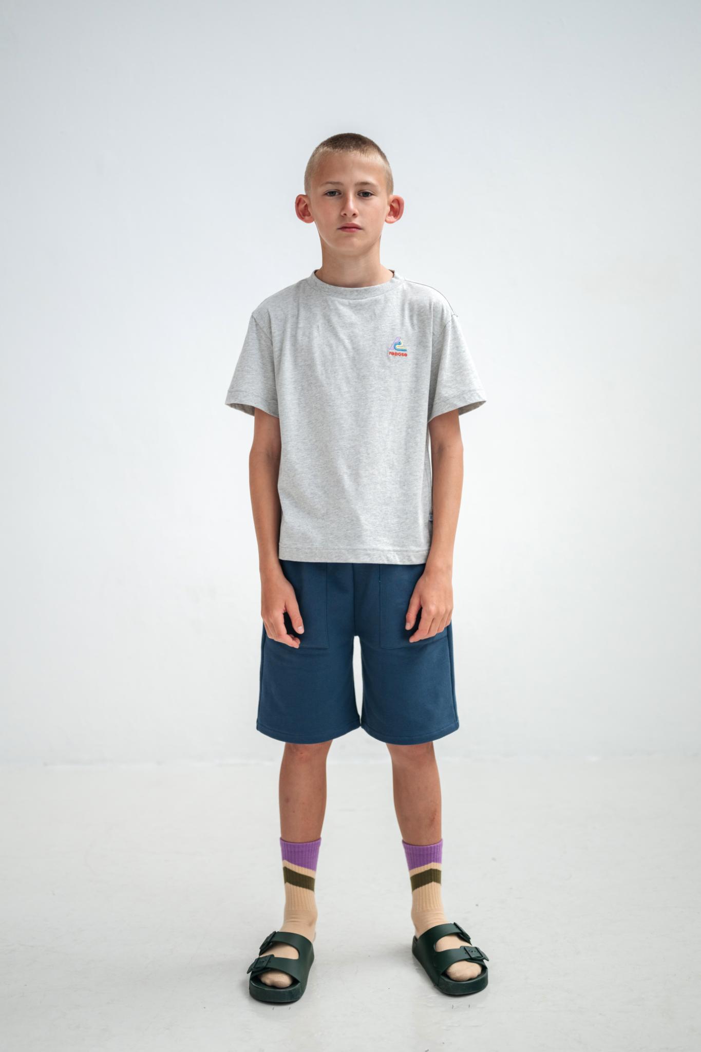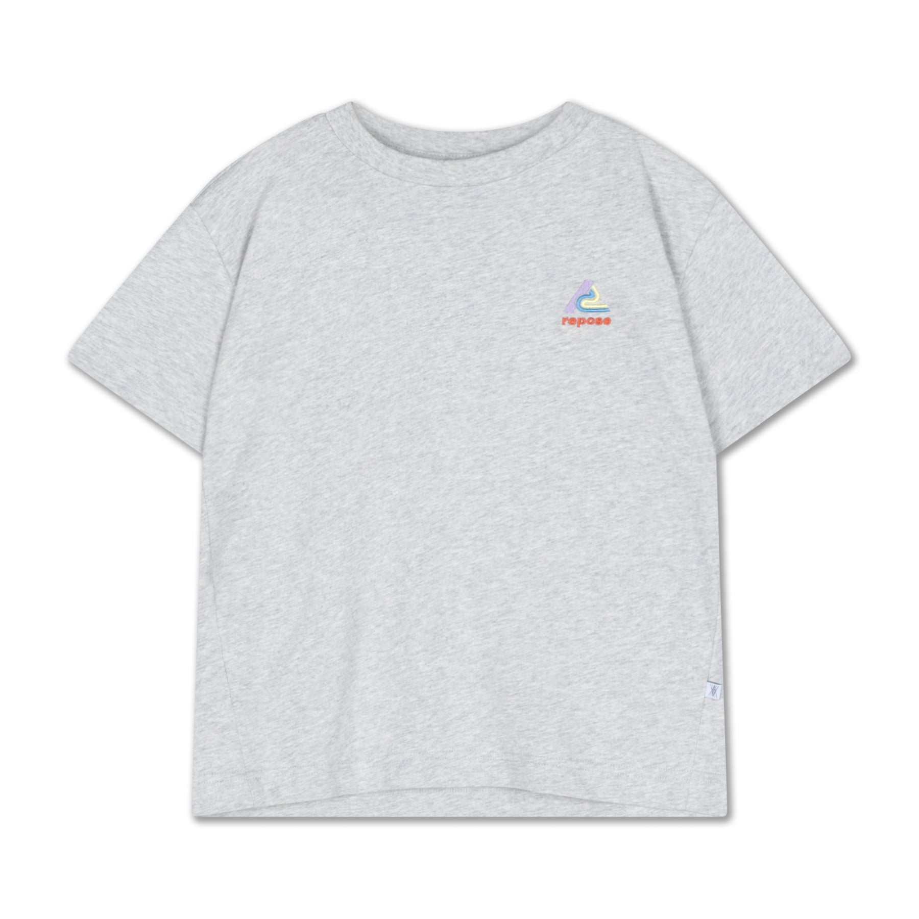 In a classic grey melange with subtle chest embroidery, this tee shirt brings nostalgic 80s style with understated appeal. Cut from 100% organic cotton in a boxy, straight-cut silhouette, it features a clean heathered grey base with discreet embroidered detailing that adds a refined touch to casual wear.