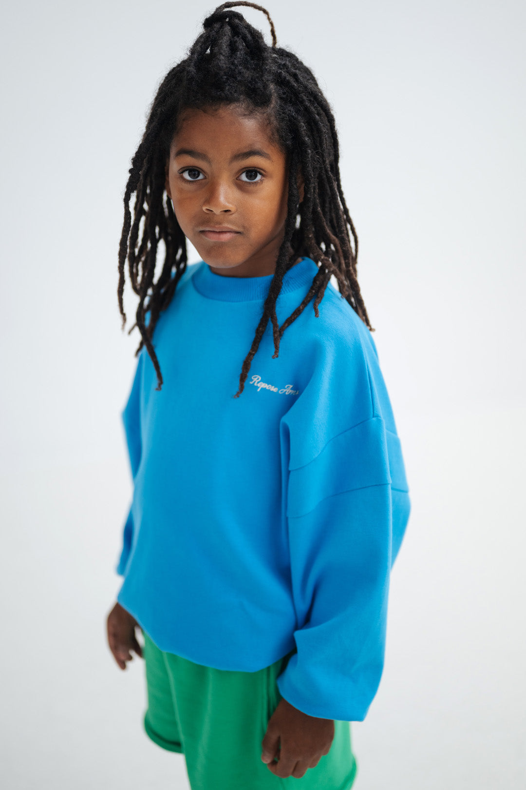 In a vibrant azure wave with subtle shoulder insert detailing, this crewneck sweater brings timeless style with contemporary color. Cut from 100% organic cotton interlock in an evergreen fit, it features a clean silhouette with a distinctive shoulder insert that adds a modern twist to this classic design.
