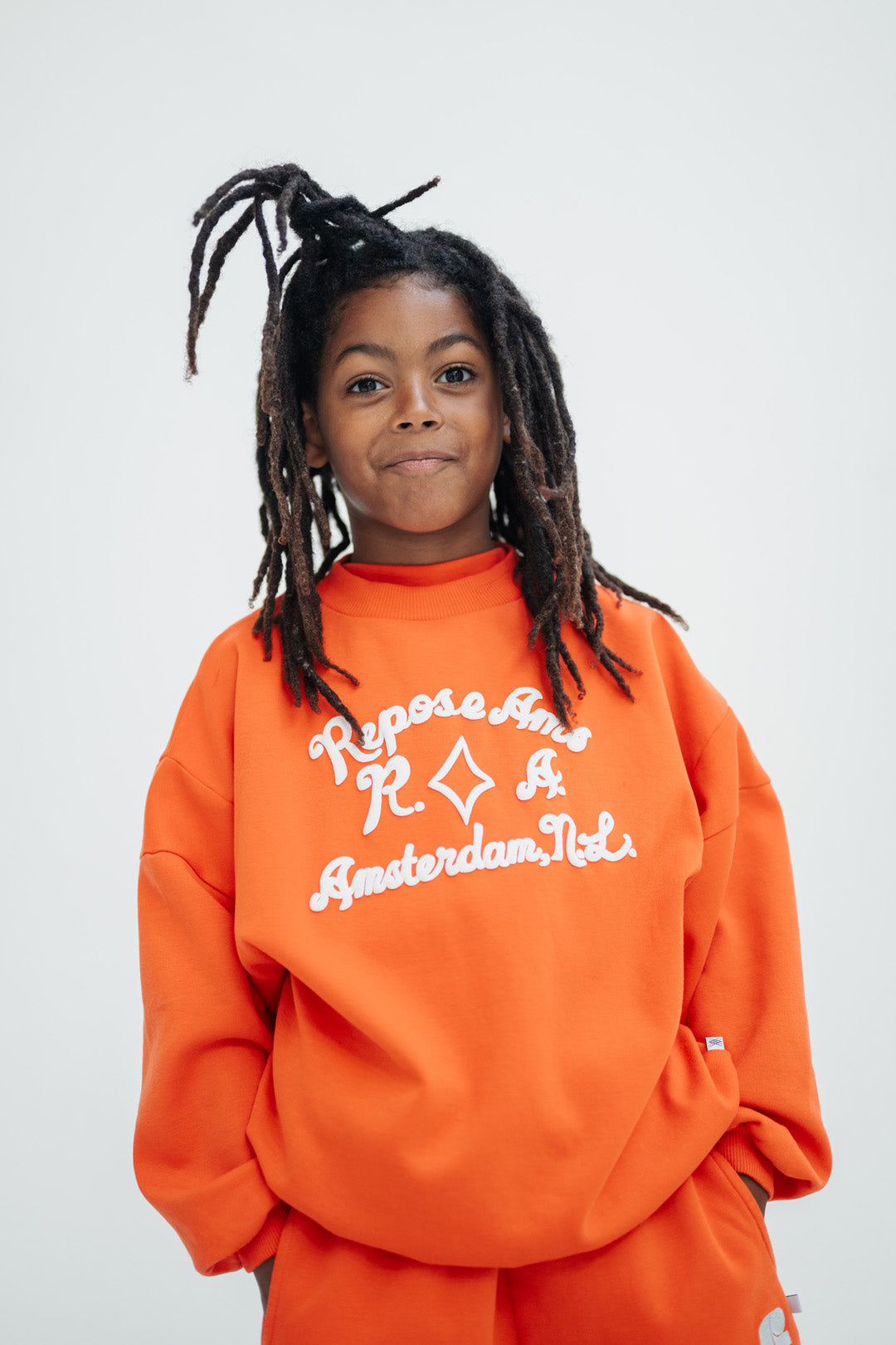 In a bold flame red with white puff print chest detail, this crewneck sweater brings timeless style with vibrant colour. Cut from 100% organic cotton interlock in an evergreen fit, it features a clean silhouette with distinctive puff print detailing that adds playful character to this classic design.