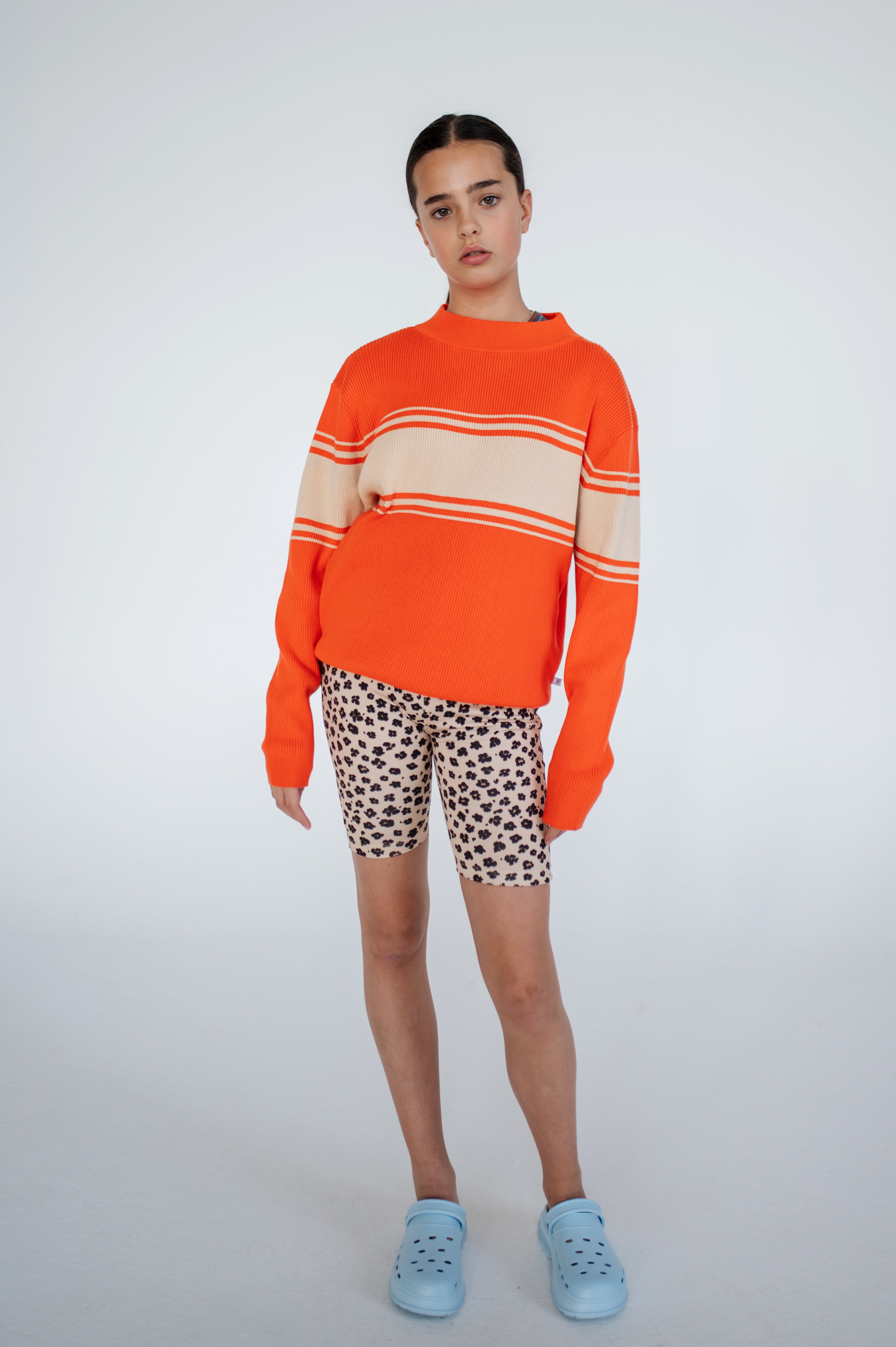 Die Bikershorts mit Leopardenmuster ist aus recyceltem Polyester gefertigt. Sie hat eine bequeme Passform und kurze Beine, sowie einen elastischen Bund – perfekt für aktives Spielen und den Alltag.