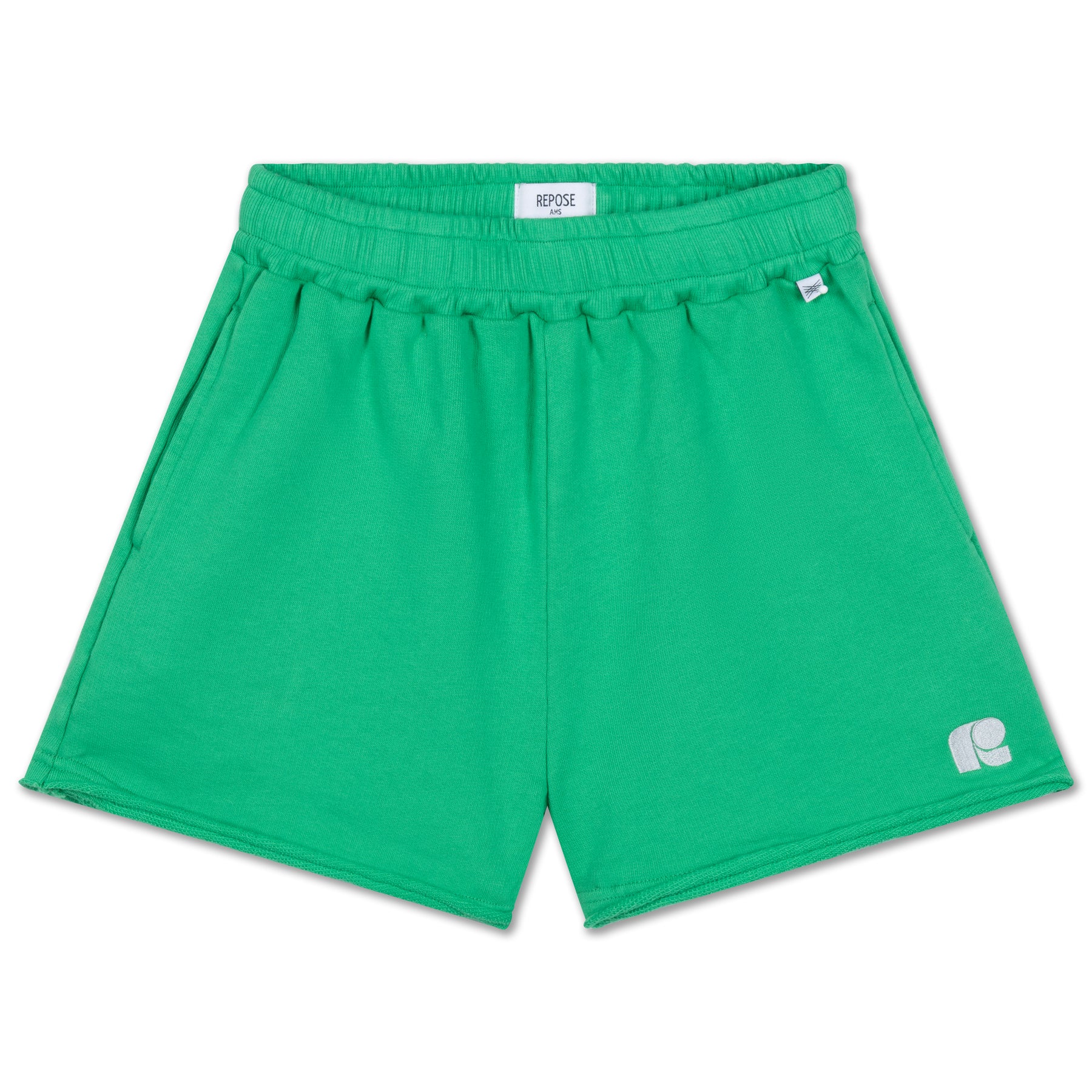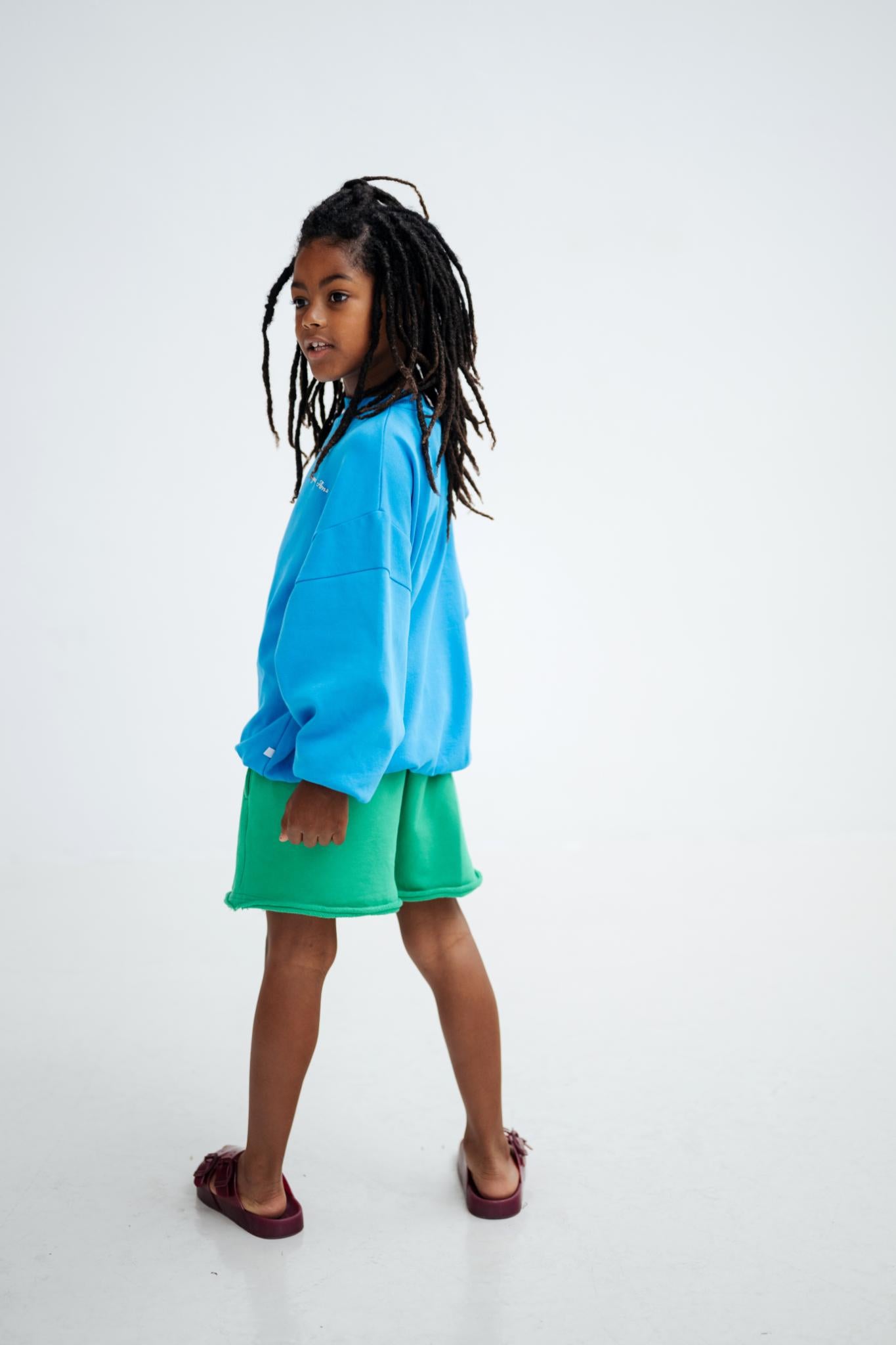 The easy short in jumping jade is crafted from organic cotton. Designed for comfort and style, it features a raw hem, an elastic waistband and practical side pockets. An embroidered logo and a woven brand tag complete the design.
