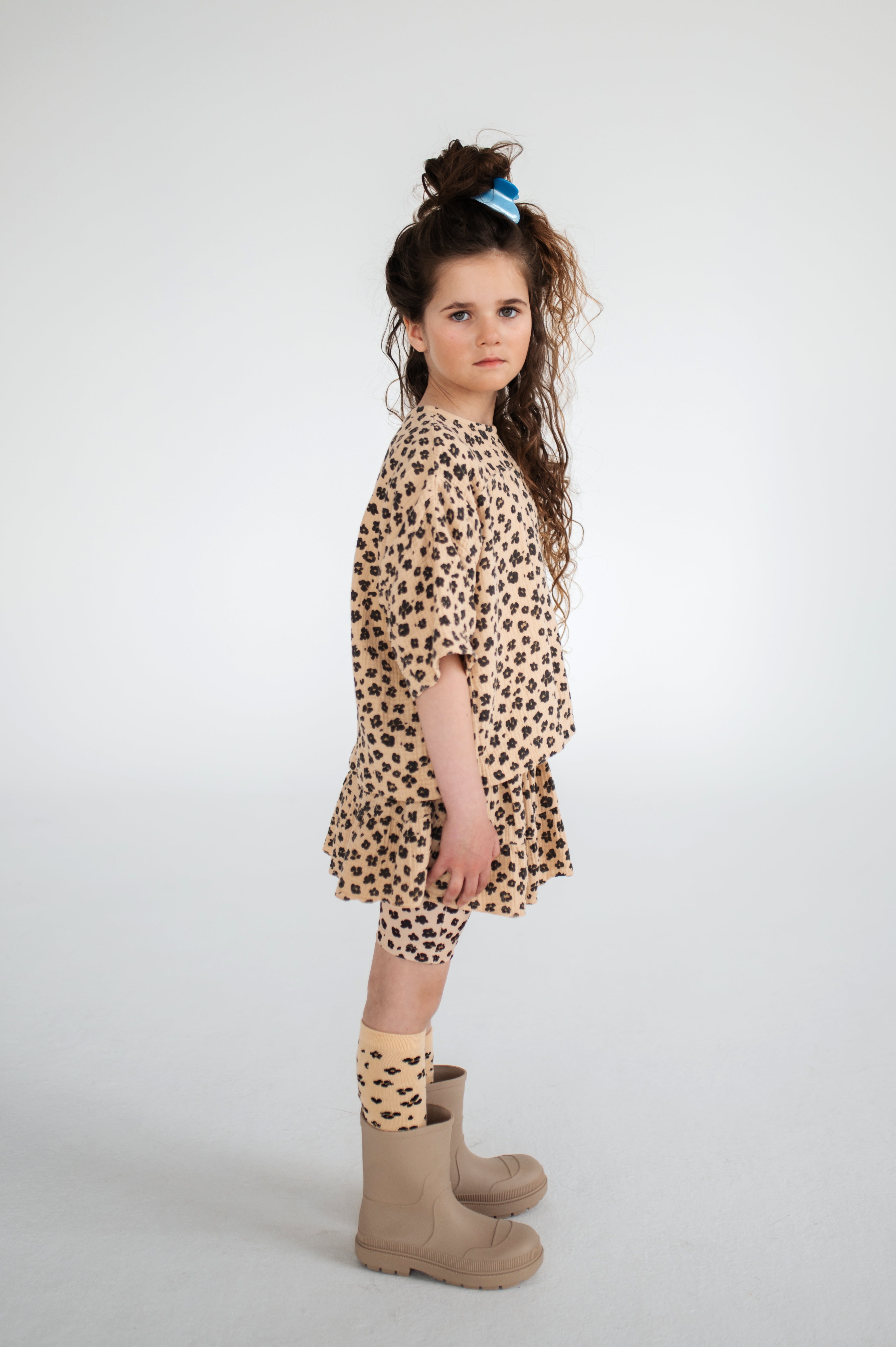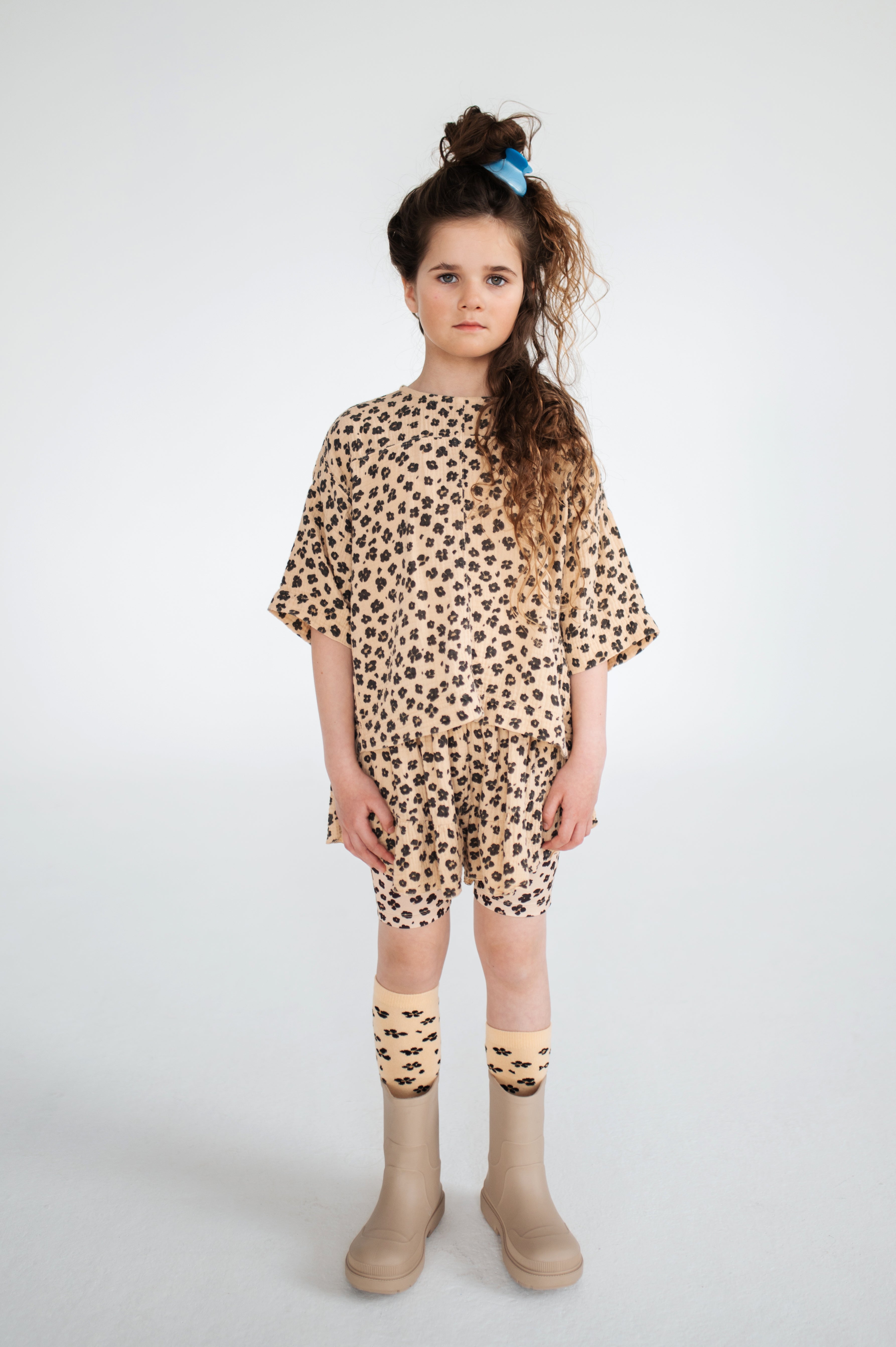Das hübsche Shirt im Leoparden-Blumenmuster ist aus 100% Bio-Baumwollmousselin gefertigt. Dieser atmungsaktive Stoff fällt wunderschön und bietet einen angenehmen und kuschelig weichen Tragekomfort perfekt für wärmere Tage ist.