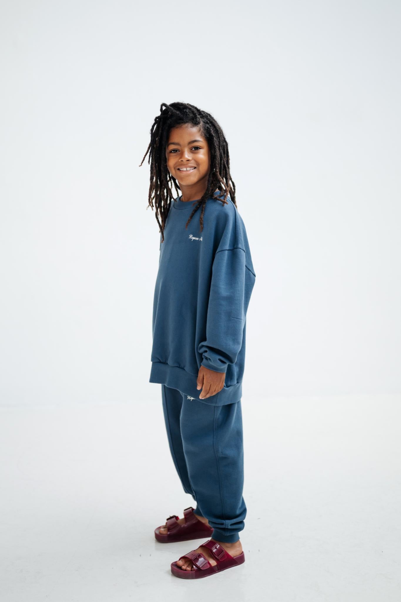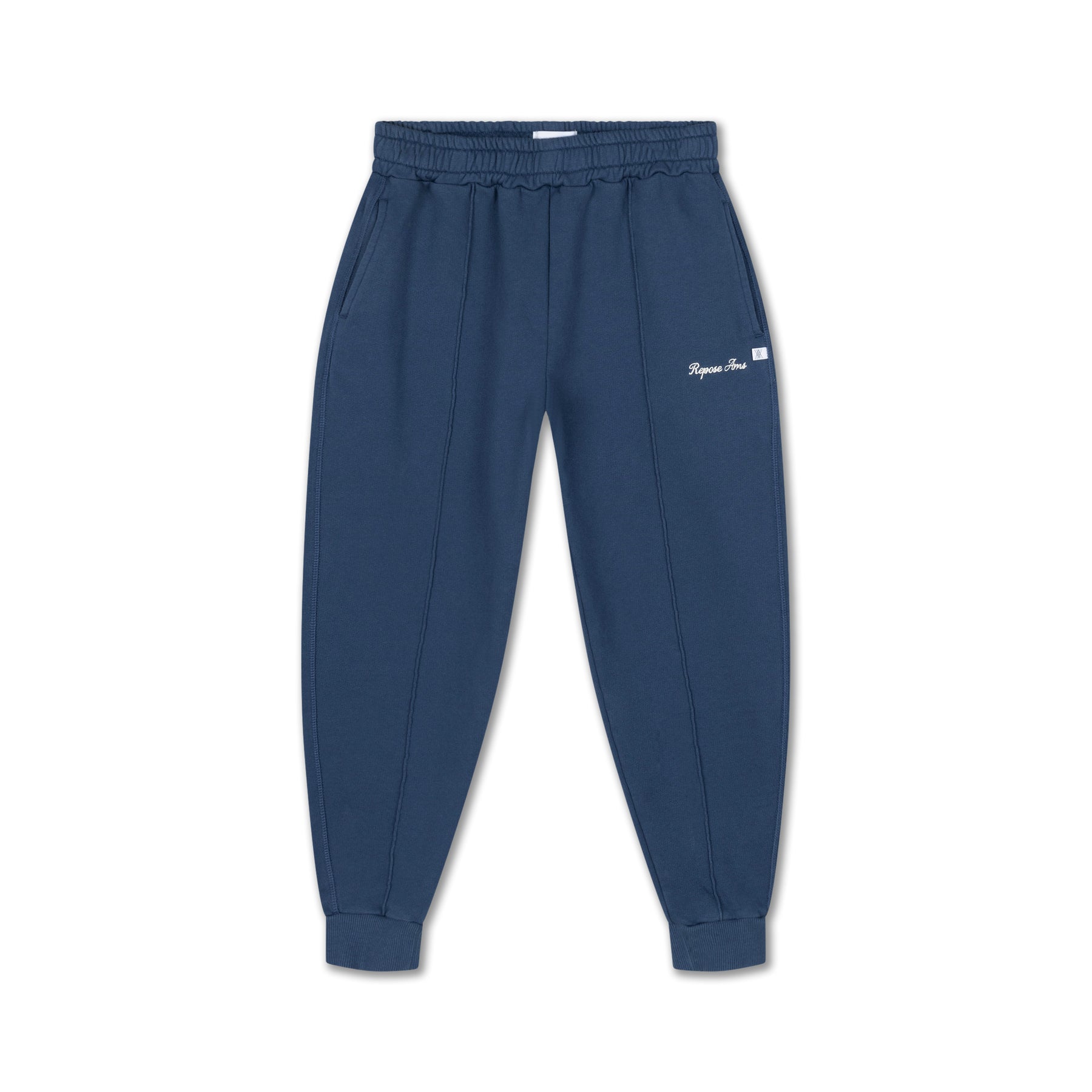 The jogger in deep sea blue is crafted from organic cotton. Shaped in a relaxed fit, it features an elastic waistband, cuffed ankles with ribbed detailing, and side pockets for everyday functionality. An embroidered logo detail completes the design. The organic cotton is designed to endure frequent wear and washing while maintaining its shape and quality.