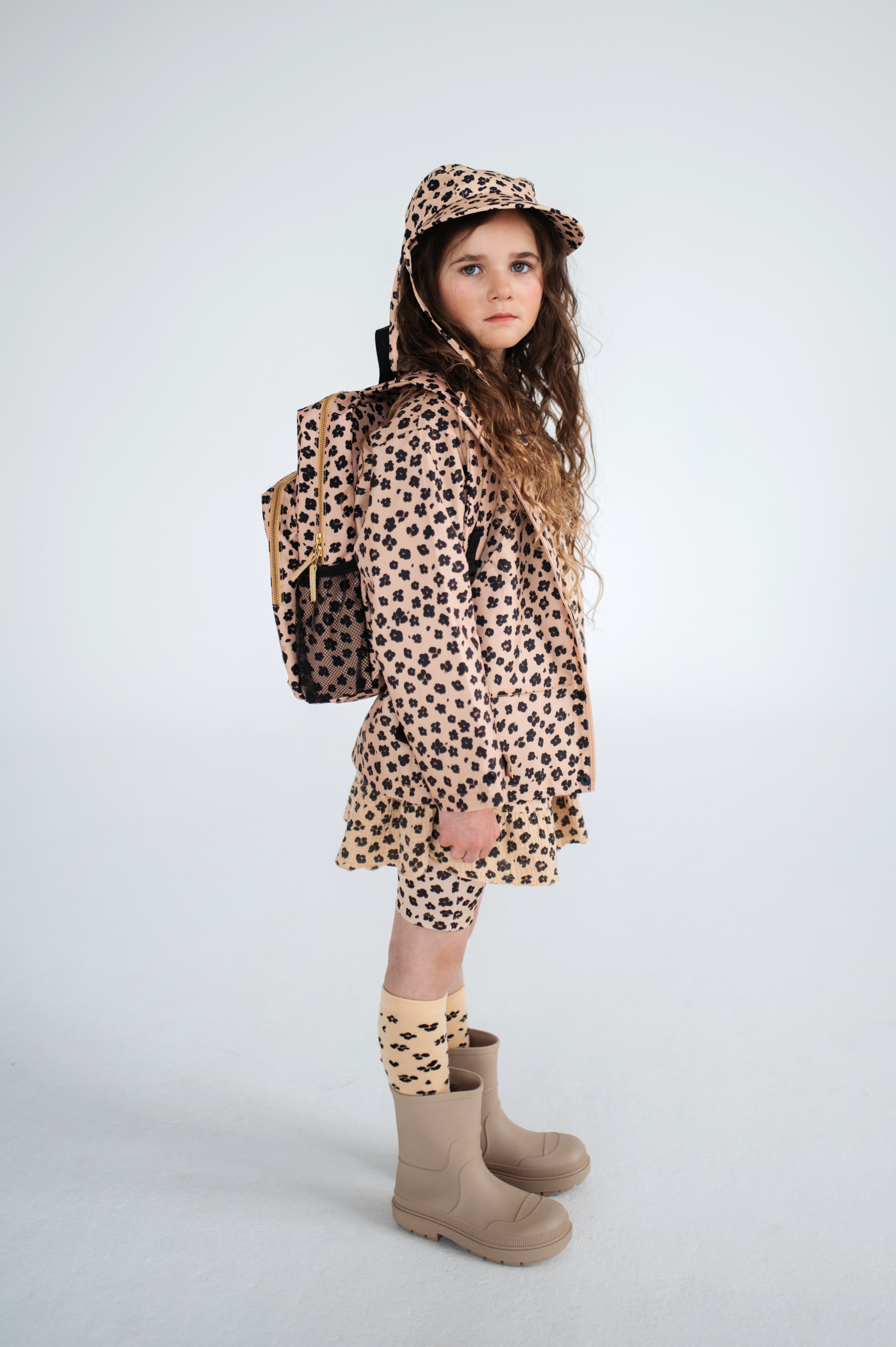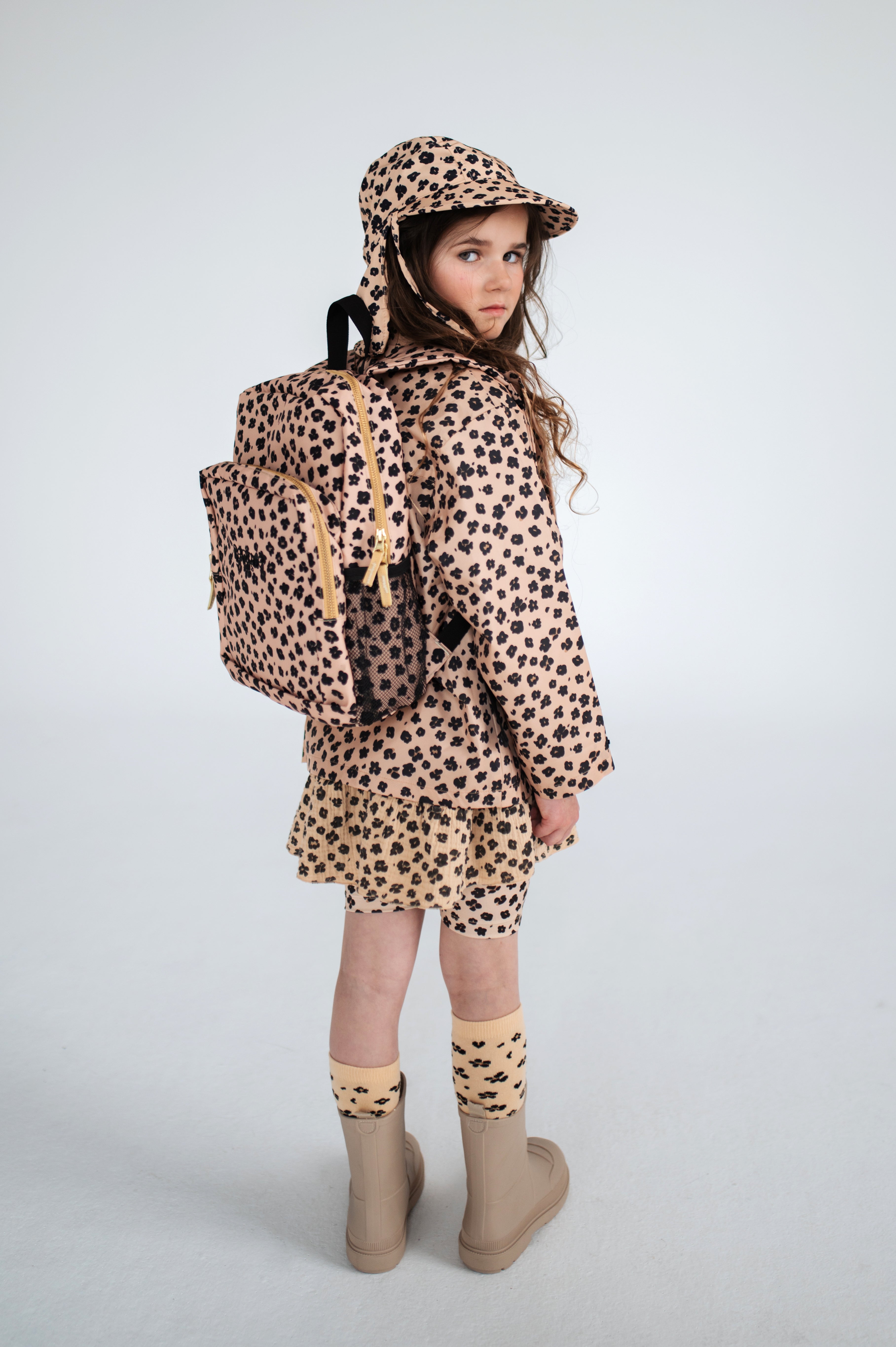 Backpack in our leopard flower print made from 100% recycled polyester, featuring an embroidered Repose AMS logo, two zip pockets, two elastic mesh pockets on the sides and a zippered pocket on the inside.