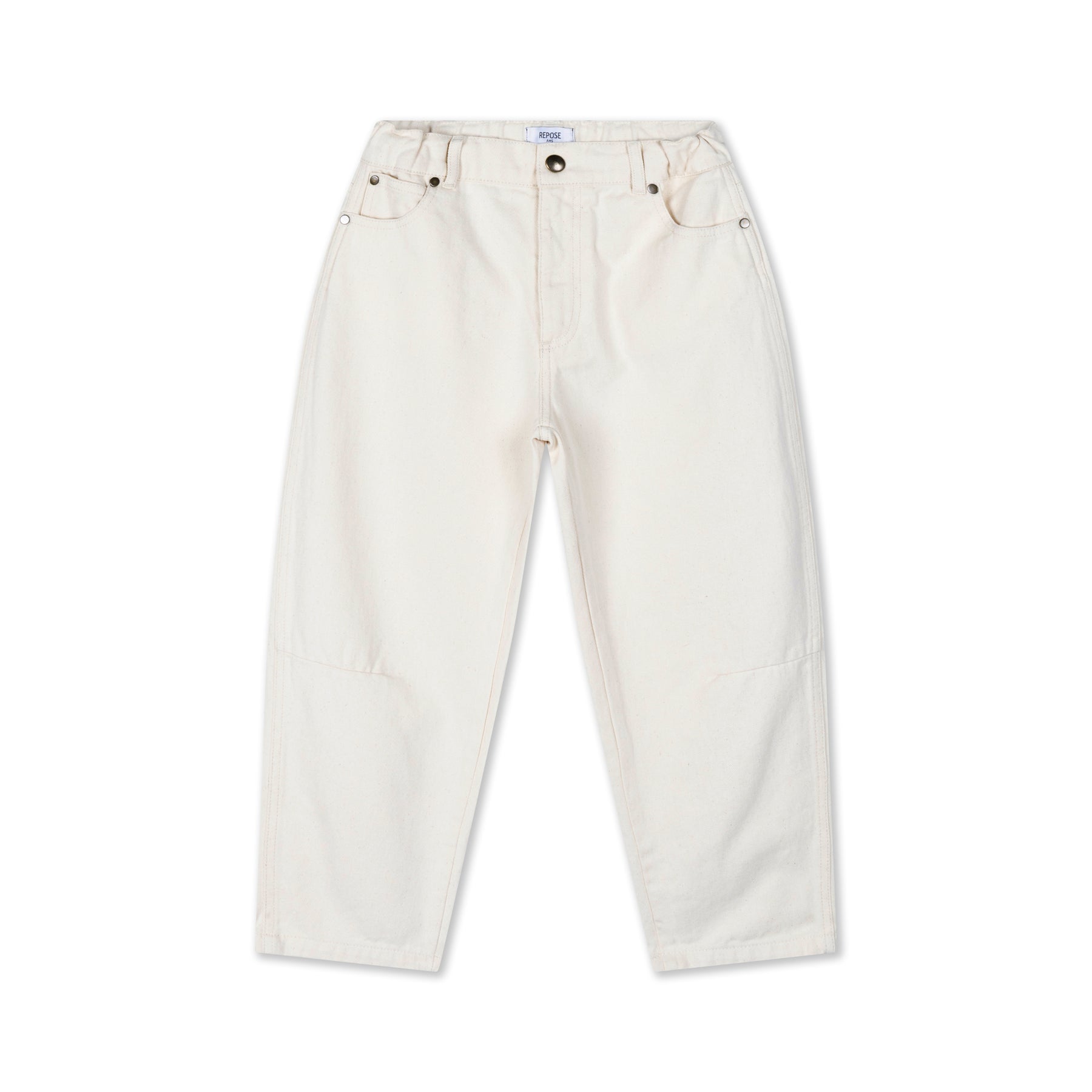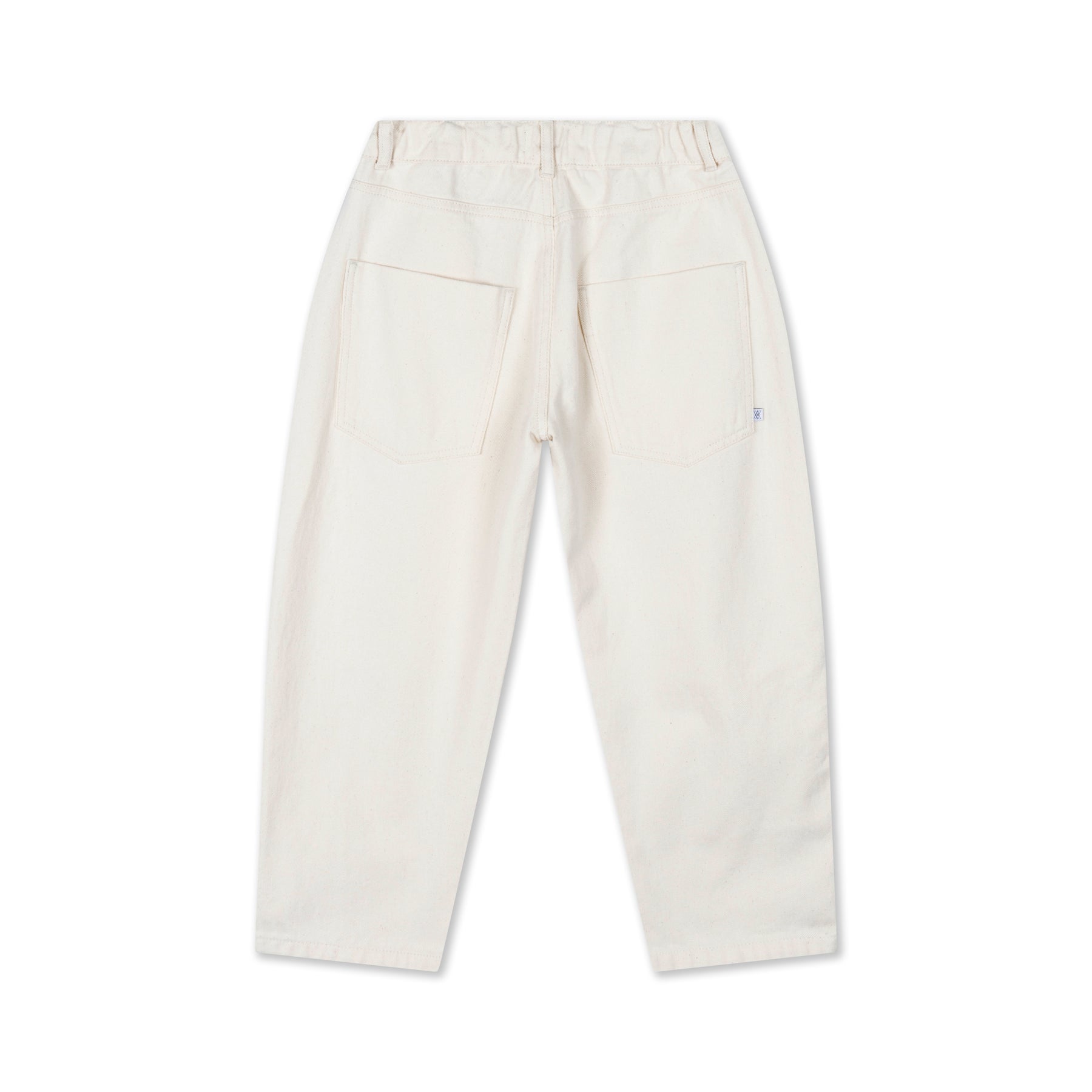 In a soft ecru wash, these barrel pants bring modern denim style with a distinctive, sculpted silhouette. Crafted from 100% organic cotton twill, they feature a unique barrel-shaped leg that is wider through the thigh and gently tapers at the ankle, creating a bold yet wearable fit.