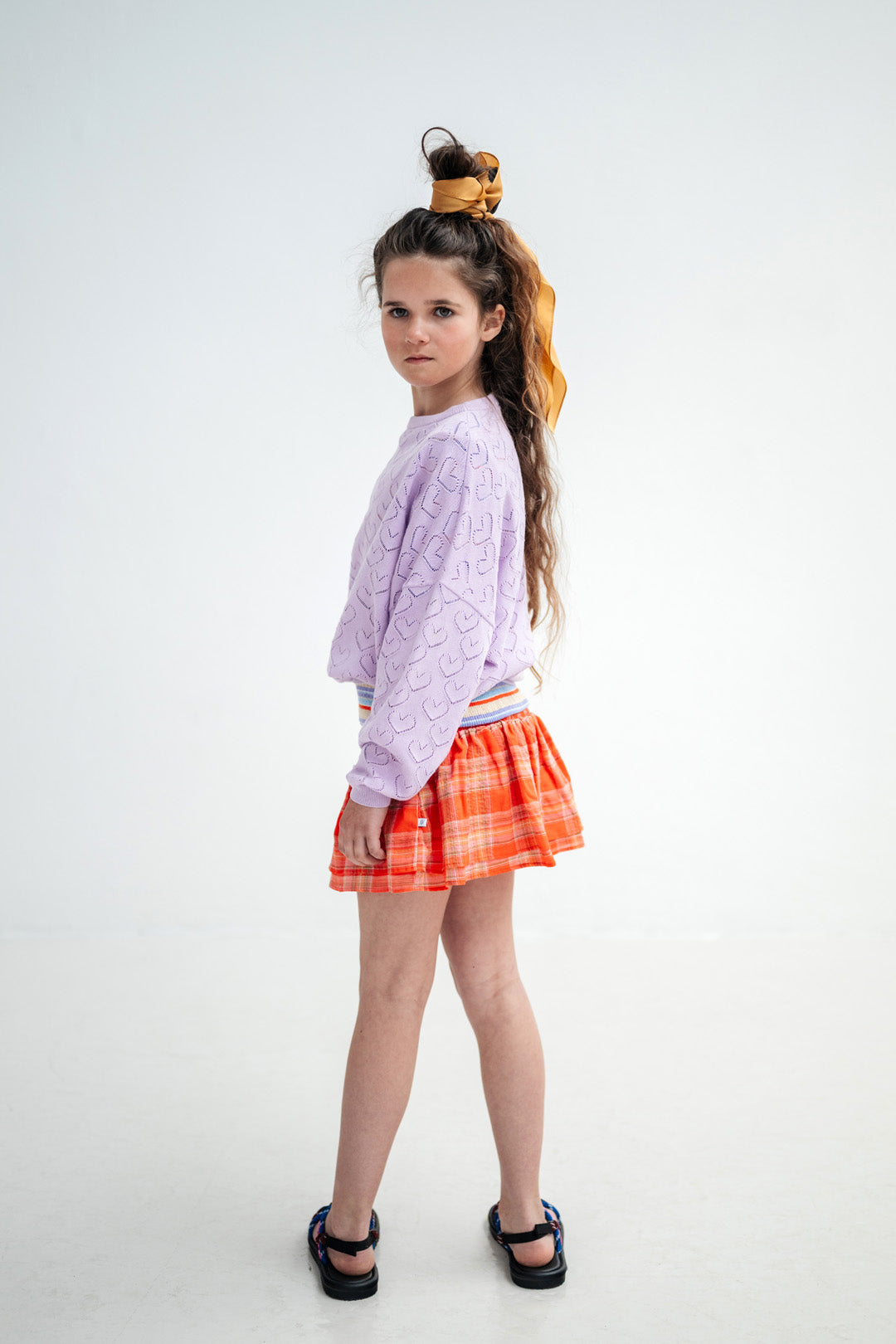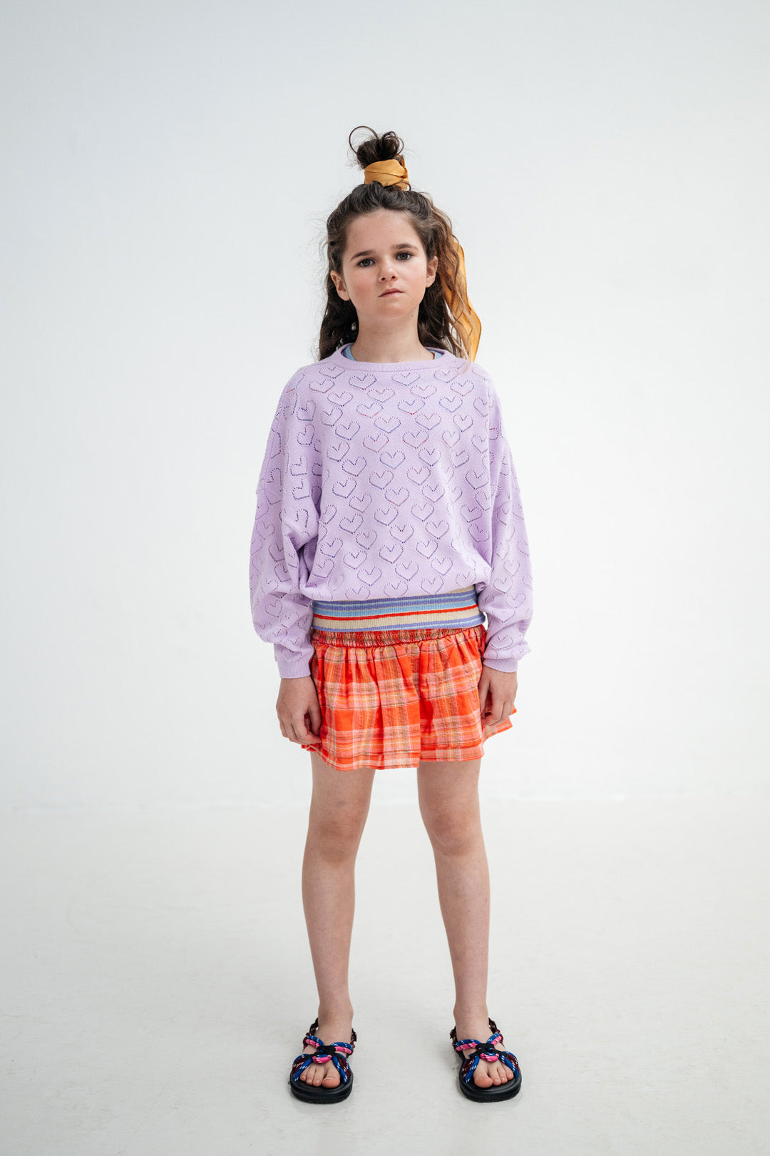 The soft, lightweight fabric ensures comfortable wear throughout the day with a flowy silhouette that's perfect for active days. With its smocked waist and cheerful check pattern, this piece pairs perfectly with tees, sweaters, or layered looks for versatile styling.