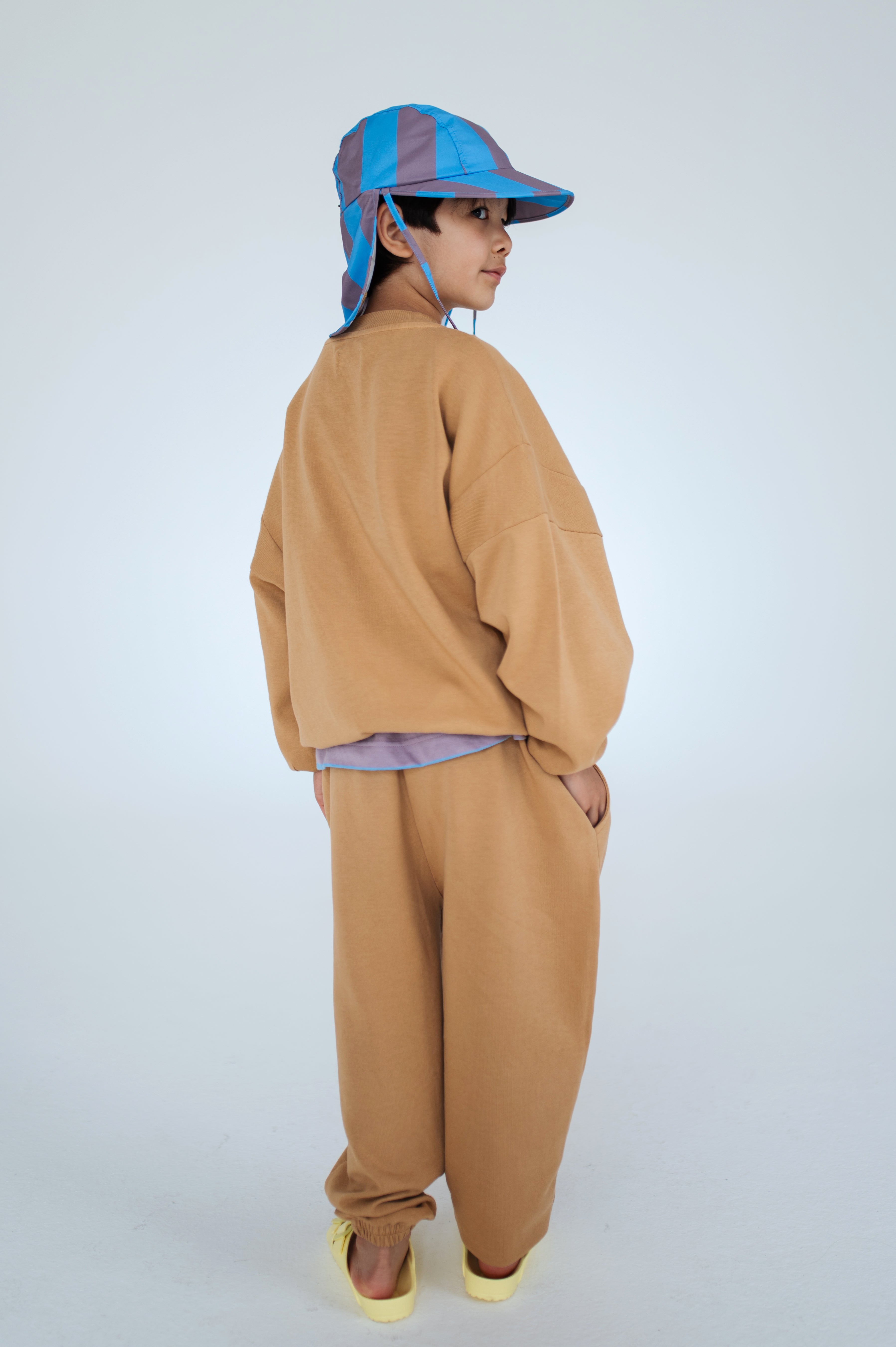 The crewneck sweater in powder is crafted from soft organic interlock cotton with a hint of stretch for extra comfort. It features an oversized fit, heavy dropped shoulders, a colorful logo on the chest, and ribbed neck, cuffs, and hem.