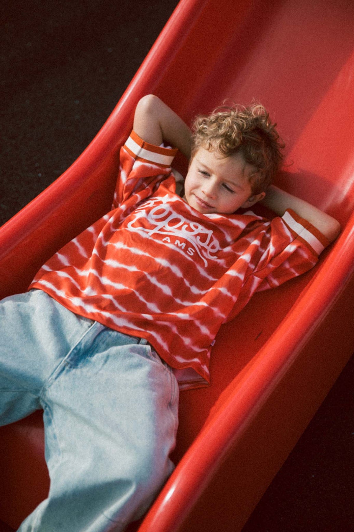 A sporty statement piece with a playful vintage feel. This sports jersey in flame red tie dye brings together bold colour and relaxed comfort, inspired by classic athletic styles. The lightweight recycled mesh fabric gives the jersey a breathable feel, making it ideal for active days and warm weather.